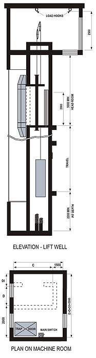 All hoist way walls should be minimum 230 mm brick or 150 mm R. C. C.